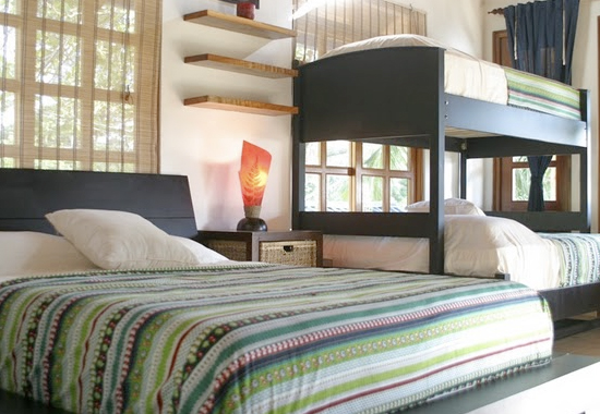 Bungalow Tranquilo – Bungalow Tranquilo is an attractive combination of deep brown woods and vibrant accessories. This room is adorned with a clean and unpretentious tribal feel with a queen platform bed and a bunkbed that has a single top and full bottom, making it perfect for families with young kids. Guests will feel calm and relaxed as they lie on the pillow top mattresses and light the Moroccan lantern while experiencing some interesting tribal art. A/C, ceiling fan, room safe, over sized hot water shower with rain can shower head and warm bedding complete the setting of this no-fuss yet aesthetically brilliant bungalow. The plush balcony furniture enhances the fun of staying here.