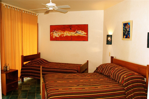 They offer three rooms on the first floor, a second floor two bedroom plush suite, and a casita or small house. Many of their guests rent the entire two storey building which functions very comfortably as a five bedroom, four bathroom top quality beachfront home. The option to rent all of Casa Azul and the casita is also available, in this scenario there are beds for 16 people.