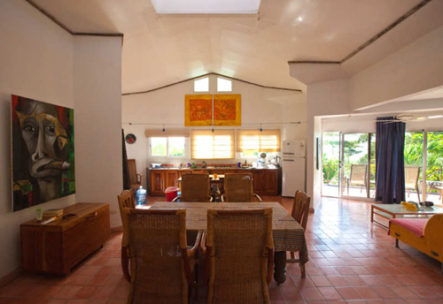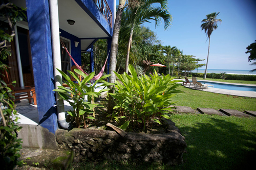 Beach House Rental – Guests have the option of renting the entire big house, a five bedroom/four bathroom private beach house. Several clients who discover Hotel Casa Azul on their travels to Mal Pais/Santa Teresa, often return to rent all of Casa Azul. Hotel Casa Azul was originally designed to offer the option of functioning as a sprawling 5Bdr/4Bath private beach house. In the vent that guests book the entire house, their on- site staff occupies the Casita or small house. The option to rent all of Casa Azul and the casita is also available, which will then offer guests beds for up to 16 people.