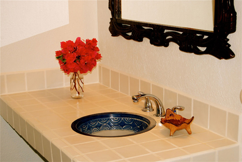 Private Casita – A distinct small open house of approximately 600 square feet, circa 2007, the casita nestles about 30 yards for the big house on the same property. It is a private, self sufficient unit. Families with young children especially enjoy the casita due to its seclusion from the bigger house. The casita sleeps a maximum of four adults or two adults with up to three kids. ‘There is a queen sized canopy bed, two single beds, and a sofa/futon all in the same room. Amenities include a large AC unit, two ceiling fans, a kitchen, lock up box, bathroom with hot water, and a screened ventilation tower. Five windows and a sliding glass door, all with screens, provide abundunt natural light and ventilation. The sliding glass door opens to a private patio furnished with tables and chairs, hammock, and a surf board lockup. The patio offers a view of the extensive gardens and a narrow vista of the pool, ocean and waves.