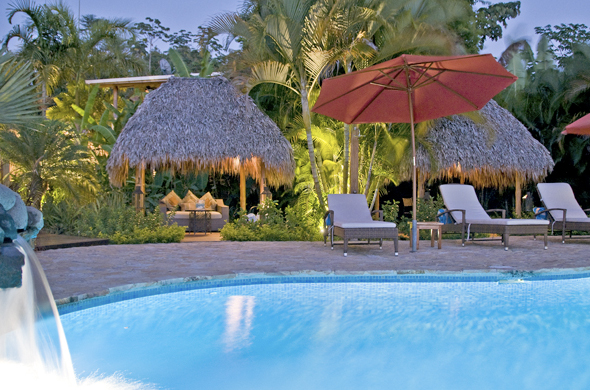 Casa Chameleon is the ideal romantic hideaway that offers the best of the region’s natural splendor, a plush ambiance and comfortable amenities. The nature retreat features the following amenities a pool lined by a lush waterfall and striking vistas of the most beautiful sites that surround the Malpais such as the tropical rainforests and ocean, private poolside cabinas for ultimate relaxation, use of local materials for the construction of the hotel facilities such as bamboo and volcanic rock, open space to practice yoga while Mother Nature provides the much needed inspiration, all types of air systems, spacious balconies, covered porches and bathrooms with all facilities and amenities such as hair dryers and organic products for the shower, good quality linens and beds, private plunge pools, spacious living areas with different options to relax in comfortable lounge chairs and hammocks, natural furnishings of locally farmed teak, pochote and tamarindo wood, IPod music station, mini bar fridge, safe-deposit box, walkie talkies, coffee and tea makers and floor to ceiling glass doors