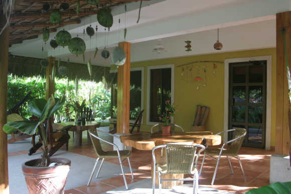 Casa Pelicano’s amenities include air conditioning, ceiling fans, and screens throughout the house, new mattresses, pillows, sheets & towels, linens provided (2 bath towels & 1 beach towel and mats per person), covered parking, 2 King size Beds, 1 full size bed, bunk bed (2 singles), 1 king sofa bed, crib & high chair upon request. Entertainment facilities offered to the guest include cable / satellite 29″ color TV and a private pool. Kitchen amenities include cooking utensils – toaster oven, blender, coffee maker, garbage disposal, pots and pans, plates and glasses, silverware, set of knives, cutting boards, mixing bowls, serving plates, wine glasses, vegetable peeler, colander, can opener and more along with refrigerator, dishwasher, microwave and ice maker. There is an outdoor terrace with hammock chairs and tables overlooking the pool and the garden along with a palm roofed gazebo with chaise lounges next to the pool. The holiday home also features an onsite surf school for surfing enthusiasts.
