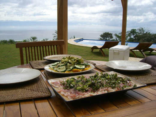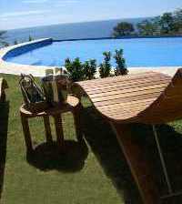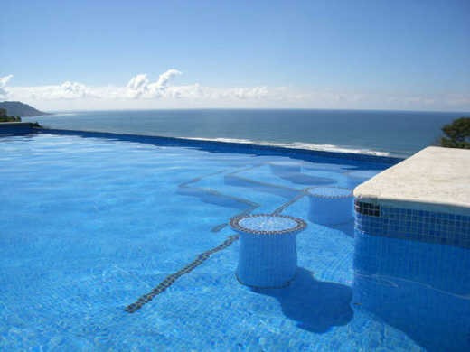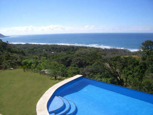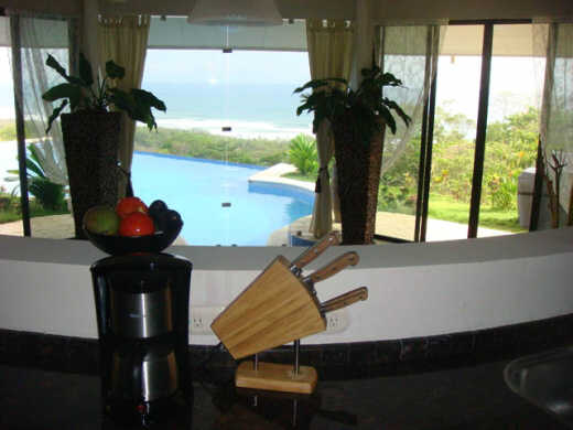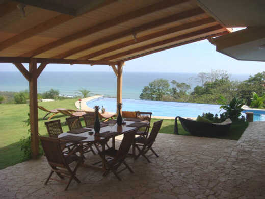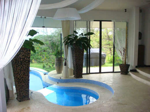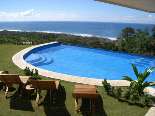 Following are the amenities guests can enjoy at this private yet reasonably priced holiday home – spacious 3 bedroom 3 bath holiday villa rental sleeps 6-7 central air-conditioning, ceiling fans & individual air-in two guestrooms master bedroom, pool and ocean view and ensuite bath large master bathroom, twin basins, two headed shower, separate jetted jacuzzi tub and glass ceiling with monkey views, large infinity pool with in pool bar, underwater sound system, computerized mood lighting, swim-in Jacuzzi poolside home theater with projector, WII, outdoor projector screen (dry season), flat screen TV/DVD and stereo system, poolside terrace with lounges and Vermont castings BBQ with side grills, 4 decks including 2 private bedroom decks and 2 common decks with electronic massage chair and massage table (private masseuse available upon request), beautiful tropical gardens with spectacular views of the Pacific and Santa Teresa Surf Break , January whale watching rooftop lounge upper guest bedroom.