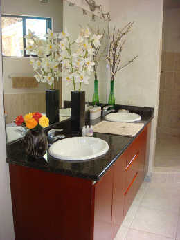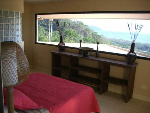 La Luxuria has three tastefully furnished air conditioned bedrooms that are available for guests to enjoy a well deserved Costa Rican sojourn; the Master Bedroom comes complete with a private bath equipped with a double shower, double sinks and a Jacuzzi with overhead glass skylight for a little monkey prying curiously (well maybe more than one sometimes). The Guest Bedroom also has a private toilet and shower with ocean views and has its own private outdoor terrace for afternoon siestas. The Upstairs Penthouse Bedroom has a similar pair of front and back balcony terraces and offers a breathtaking panoramic view of the grand Costa Rican coast. All the bedrooms feature ocean views. The master suite features private ensuite, delightful with double shower, double vanities, a Jacuzzi tub and glass ceiling.
