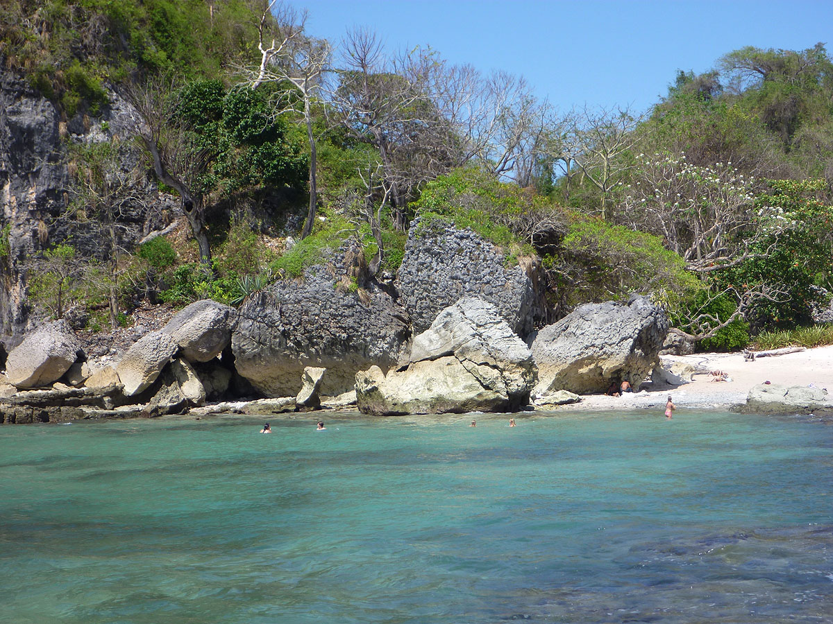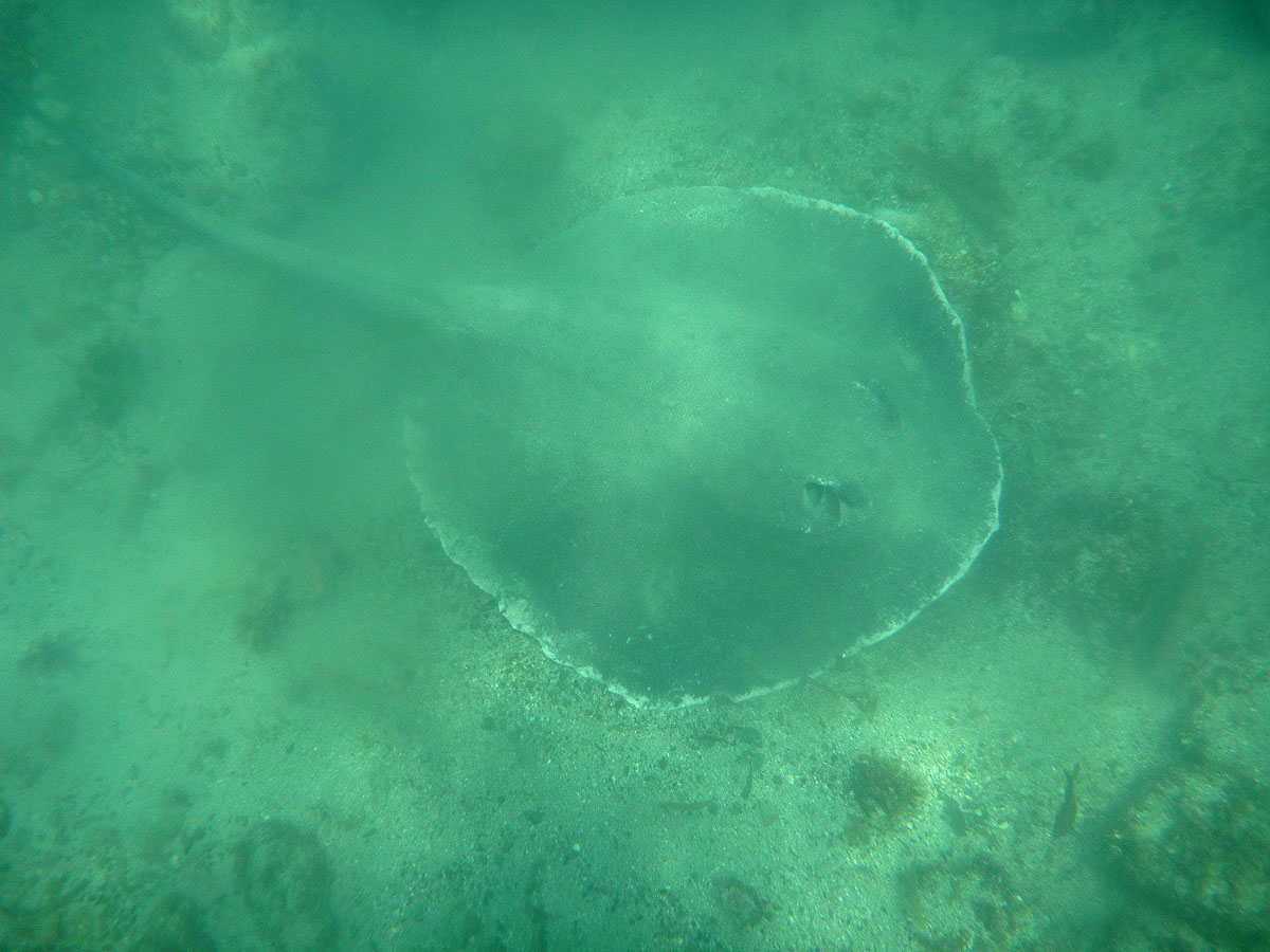 Rays – Huge stingrays up to 2 meters wide are seen sometimes on the sandy bottom in the middle of the cove. (See video below for footage of one.)