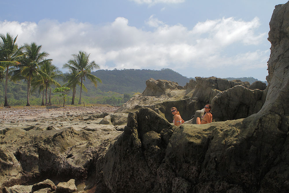 The Malpais area has now become known mainly for its amazing surfing in Santa Teresa and gorgeous beaches, but there’s much more than white sand here. The convoluted coastal topography has beaches of different colors of sand… some of rock and some of white shell. Many are lined with palm trees, mangroves, or almond trees. There are points with epic giant boulder piles, or huge jungle-covered cliffs towering above the waves.