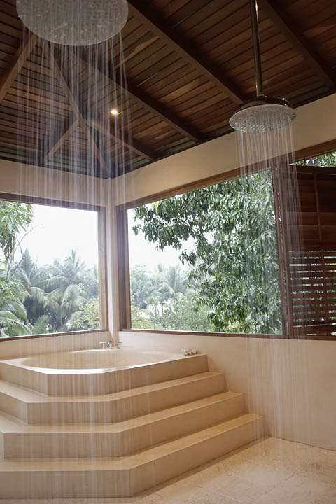 - The Master bedroom which is on the second floor has a king sized bed. In the bathroom is an double shower, double outsized bathtub with a good view of the beach, 2 customized sinks, a lavatory and cupboards.