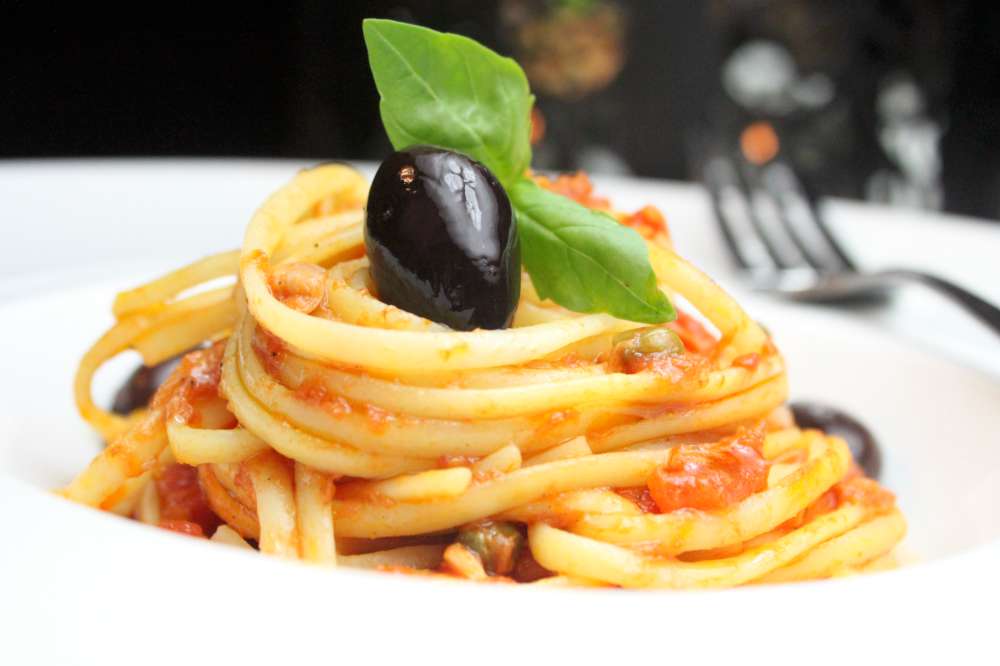 Linguine al Tonno Sautéed with fresh yellow fin tuna, capers, green olives, onion, garlic and