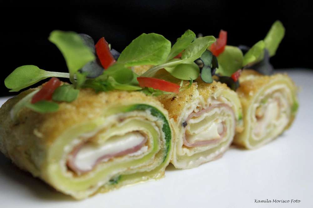 Involtini di zucchine – Zucchini Roll ups with smoked cheese and ham