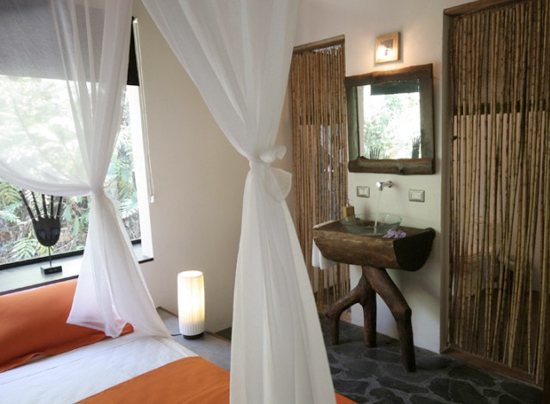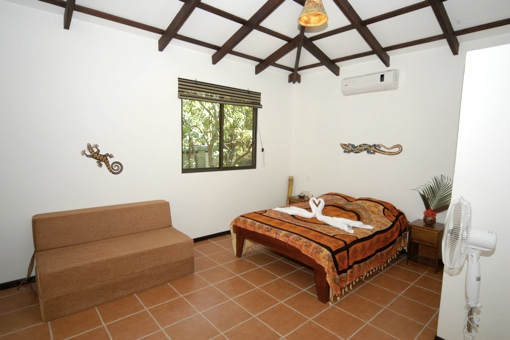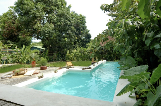 Luxury Bungalows – This residence is inspired by a combination of the Caribbean and the Mediterranean style atmosphere. It offers guests a private parking area, a restaurant, a swimming pool with a Jacuzzi, an area for sunbathing, and eight wonderful private bungalows (one of them especially designed for the disabled). Each bungalow is appointed with an air conditioner, a safe box-big enough to store lap tops, Cable TV, free internet service, a mini fridge, a fan, warm water, a rest room with two sofas and table, queen size beds, and a small bed. Every bungalow features a spacious bathroom and a large terrace where guests can admire the tropical vegetation, humming birds, squirrels, congo monkeys, butterflies and other indigenous wildlife in the area.  The bungalows are big enough for a family of three or four people and breakfast is included in the price.