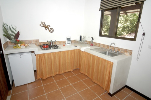 Ocean View Rooms – Located high up in the beautiful Hills of Mal Pais these rooms offer you a perfectly private ocean view. You are completely absorbed by the lush jungle surroundings, yet are only minutes away from all the conveniences at the “El Cruce” Mall. You will find banks, stores, pharmacy, medical services, restaurants, and all other necessities  in the vicinity. A 10-minute picturesque walk or a 5-minute drive will bring you to the spotless beaches and popular surf spots of Malpais and Santa Teresa. All four rooms on the second floor feature sweeping oceanic vistas from the terrace. Elegantly furnished with queens beds, fans, screened windows and doors opening into a spacious terrace, the rooms also have private bathrooms with hot water and safety deposit boxes. The two central rooms have fully equipped kitchenettes. The terraces can be inter-connected to create a single or a couple of apartments that can accommodate a large group of up to 8 people.