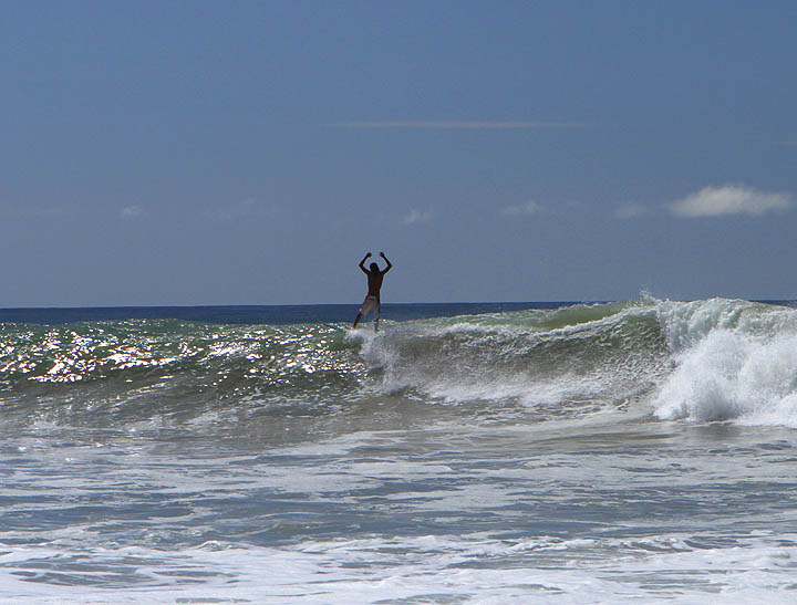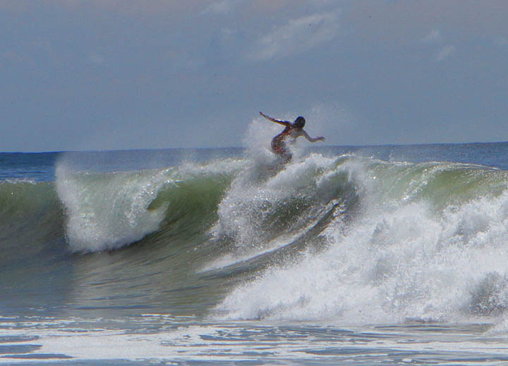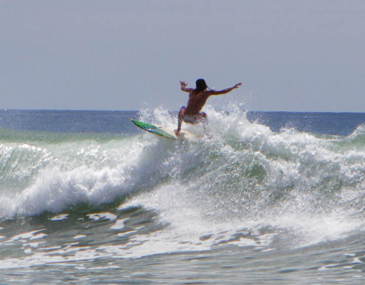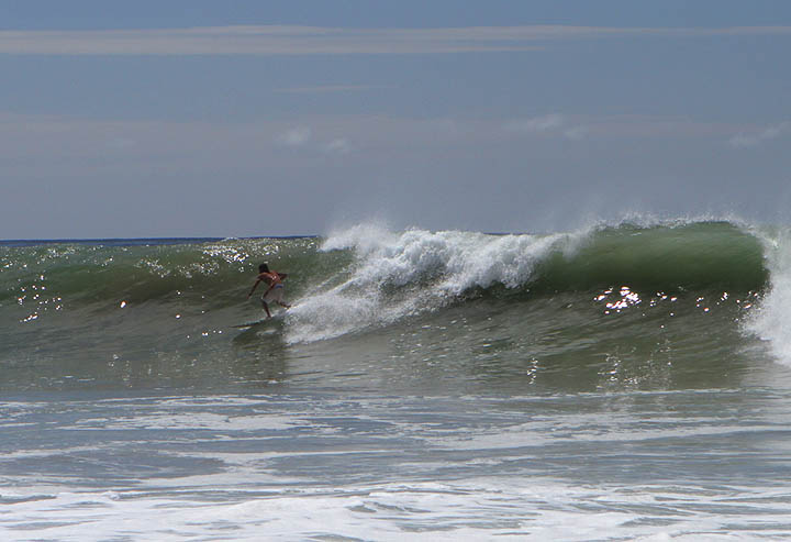 This right-hand point break can be good when the swells are large, and it’s known to get hollow at times. This is Malpais surfing at its best. The break can work at all tides, but it’s best at low tide, and during this time, your friends and family can walk out on the rocky point to watch you surf and take photos. The photos in the gallery below were taken from this natural jetty on an average day.