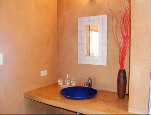 The master bedroom at Wave Watcher has a king size bed, ideal for honeymooners or couples. In the guest room is a queen size bed for the other occupants. The house is equipped with a portable air conditioning unit that can be moved from one room to the other for the occupants’ comfort during the warm season Each of the rooms have bathrooms with hot and cold showers and decorative mosaic tiles which serve as an accent to the house’s minimalistic design.