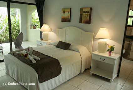 In room amenities include air conditioning, ceiling fan, hot water, water cooler with water provided, serta pillow (top orthopedic mattresses), satellite TV, wireless internet, full kitchen, room safe, pull-out futon, DVD player, microwave oven, blender, toaster and coffee maker.