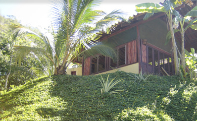 Bungalows – All bungalows have a private bathroom which is partly open to the sky for hot water showers under the sun or stars, a small kitchenette, fridge, safe box and wood furnishings. Their bungalows are built with an effective ventilation system, and each has a ceiling fan. All beds have orthopedic mattresses. Each bungalow features a private veranda with hammock where guests can relax in the backdrop of Santa Teresa’s spectacular sunset.