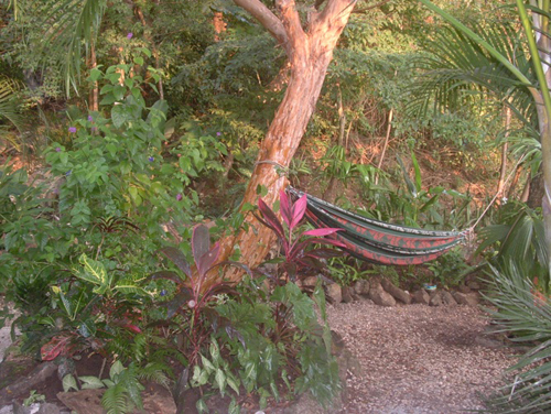 The Casitas and Garden view rooms are all clean, secluded and easily accessible to all the hotspots guests usually like to frequent. You can wake up to a breakfast treat that can be enjoyed in the midst of Santa Teresa’s lush forests in the backdrop of howler monkey cries and chirping parrots. There is a nice reception area where you can socialize with other tourists. The Reception Area is located at the entrance to the property, and offers guests a complimentary breakfast each morning from 8 am to 11 am. They now also have ‘Wi-Fi’ available at the reception center for guests as well. Check out Buenisimo’s lending library and lounge area. Garden View Rooms nestled in the verdant gardens at the entrance to the property and offer an easy walk to the beach and restaurants.