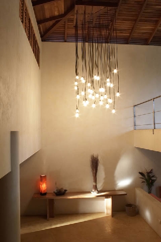 March House is ideal for those who value their privacy. No one would know you are here not unless you would want them to know. It is a perfect place for quiet rest and relaxation. You can be lulled to sleep by the hum of the waves and be awakened from your sleep by the cheerful chirping of birds. You can enjoy reading a good book on the couch outside the room, soak in a bathtub while watching the sun set in the horizon, or invite friends over for dinner underneath the stars. House Details March House has a large open lay-out where the living room, seating area, dining room and kitchen all seamlessly lead onto the patio which directly faces the beach which is just 75 meters away. A fountain and water channel runs along the house’s eastern side. In the grounds are several fully matured mango, orange, banana and coconut trees and an abundance of fragrant native blooms. In the living room area one can find an over-sized sofa, a large daybed, a center table with mood lights and lots of free space.