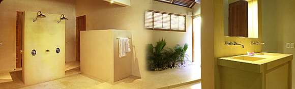 - Each of bedrooms 3 and 4 have king size beds. These two rooms share a large bathroom which has a double shower, a double sink, a lavatory and 2 walk-in closets. Both rooms have private patios with daybeds.